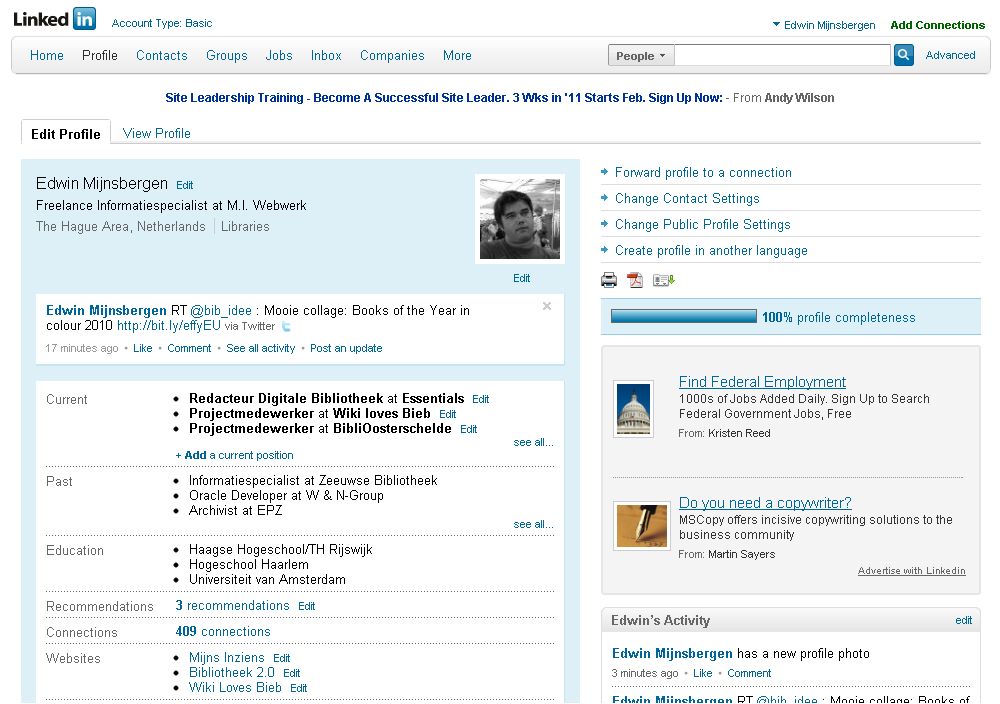 6. @Cora: LinkedIn navigeert wel prettiger inderdaad. Ik vind Facebook wel weer prettiger dan Hyves. Daar blijf je onnodig klikken.