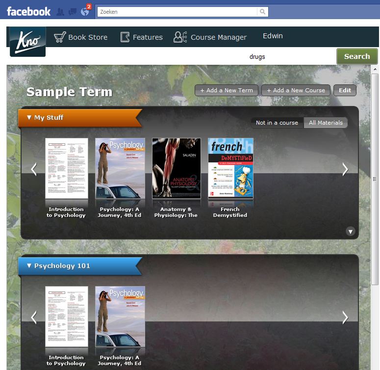 Het concept valt me eerlijk gezegd een beetje tegen. De app ziet er goed uit en stelt je in staat om je studieboeken voor het komende schooljaar op te zoeken, aan te schaffen, bijeen te houden én te lezen, maar helaas gebeurt dat niet binnen facebook zelf. Als je op een button klikt wordt je doorverwezen naar de website van Kno. Daar eenmaal aangekomen werkt alles prima, ook de online reader, maar welbeschouwd is de app van deze uitgever dan toch niet veel meer dan een reclamebanner waar je ook boekomslagen in kunt bewaren. Of zie ik dan wellicht iets over het hoofd?
