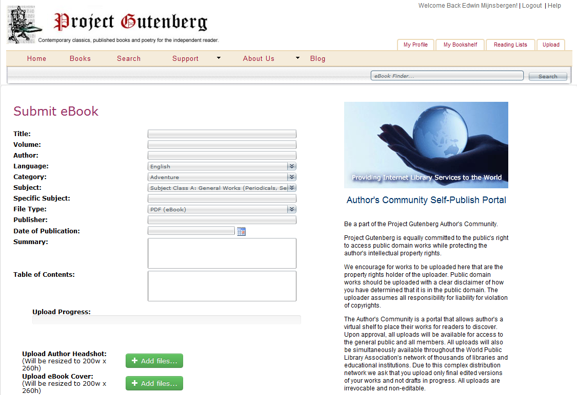 Project Gutenberg lanceert uitgeefplatform self.gutenberg.org
